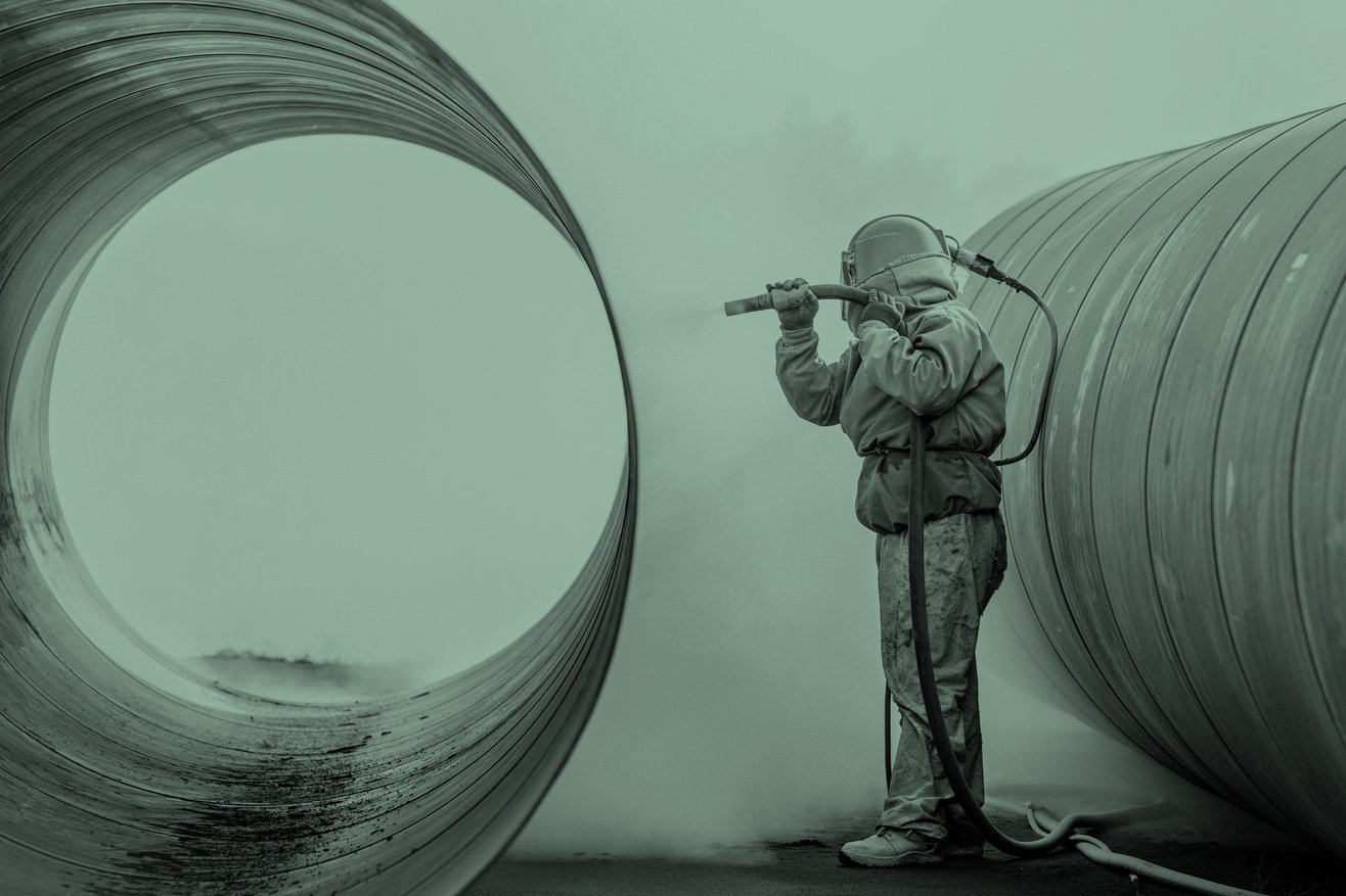 Traditional method of surface preparation for steel and concrete. The process is used for the removal of industrial coatings and corrosion and to provide new coating and lining systems with an anchor.